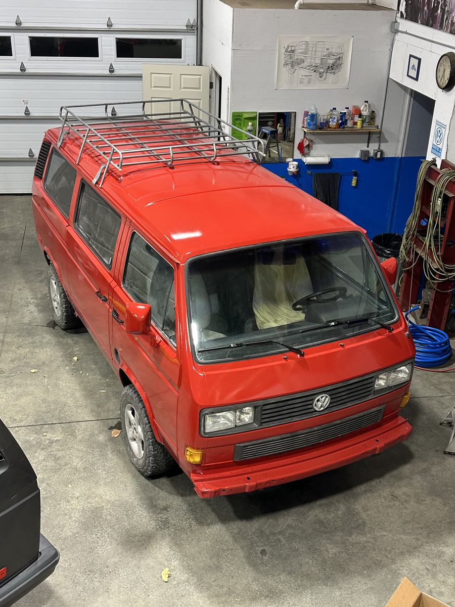 Every system worked through, and renewed. Upgrades include new Bilstein shocks, springs, front end suspension, steering rack, new power steering hoses, fuel tank, radiaror, all new brake lines, tires, rims, tinted windows, underbody cleaned, and painted, new fuel lines, solid good running 2.1 stock waterboxer engine, new cooling hoses, new battery. Clean solid body, went to body shop, all body work done, and new paint completed 2/2025. Runs, and drives really nice. Sold with original VW tubular roof rack, rear Gary Lee full rack, with larger spare tire, and new high lift jack.